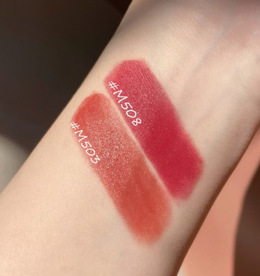 這幾個顏色,我個人是比較喜歡的色號,一個是503,一個是508。503氣質掛的一只,上妝涂就是溫柔可人無攻擊性的鄰家女孩真踏馬好看,怎么涂都好看,素顏薄涂化妝厚涂,都可以。