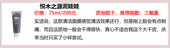 之前在一個(gè)蠻喜歡的博主的那里看到推薦,說(shuō)是悅木之源泥娃娃有豐富的活性炭、能徹底吸附毛孔里的油脂,就mark住了。買(mǎi)之前呢,看了微博一圈,還問(wèn)了我正在用的同事,說(shuō)泥娃娃很好用,可以弄出好多臟東西。