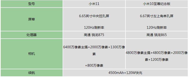 小米10、小米11參數對比: