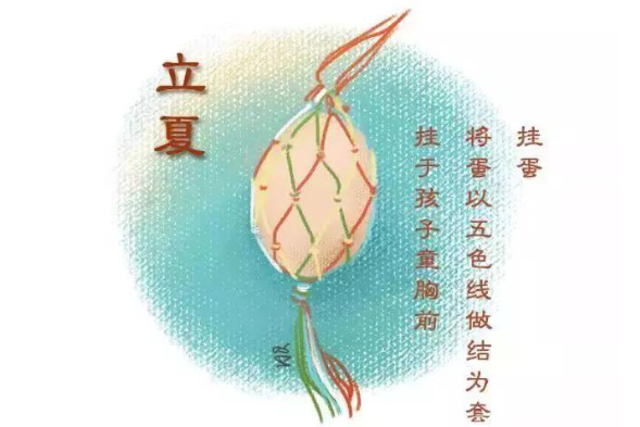 立夏就意味著夏天來了,隨著氣溫上升,炎夏逼近,孩子們很容易身體疲勞、四肢無力;所以據(jù)說只要在立夏這天吃雞蛋,就可以預(yù)防這個癥狀,“掛蛋”也是立夏常見的習(xí)俗之一。