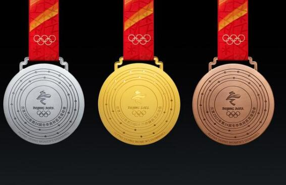 冬奧會獎牌正面中心刻有奧林匹克五環標志,周圍刻有北京2022年冬奧會英文全稱(XXIV Olympic Winter Games Beijing 2022)字樣。圓環做打凹處理。